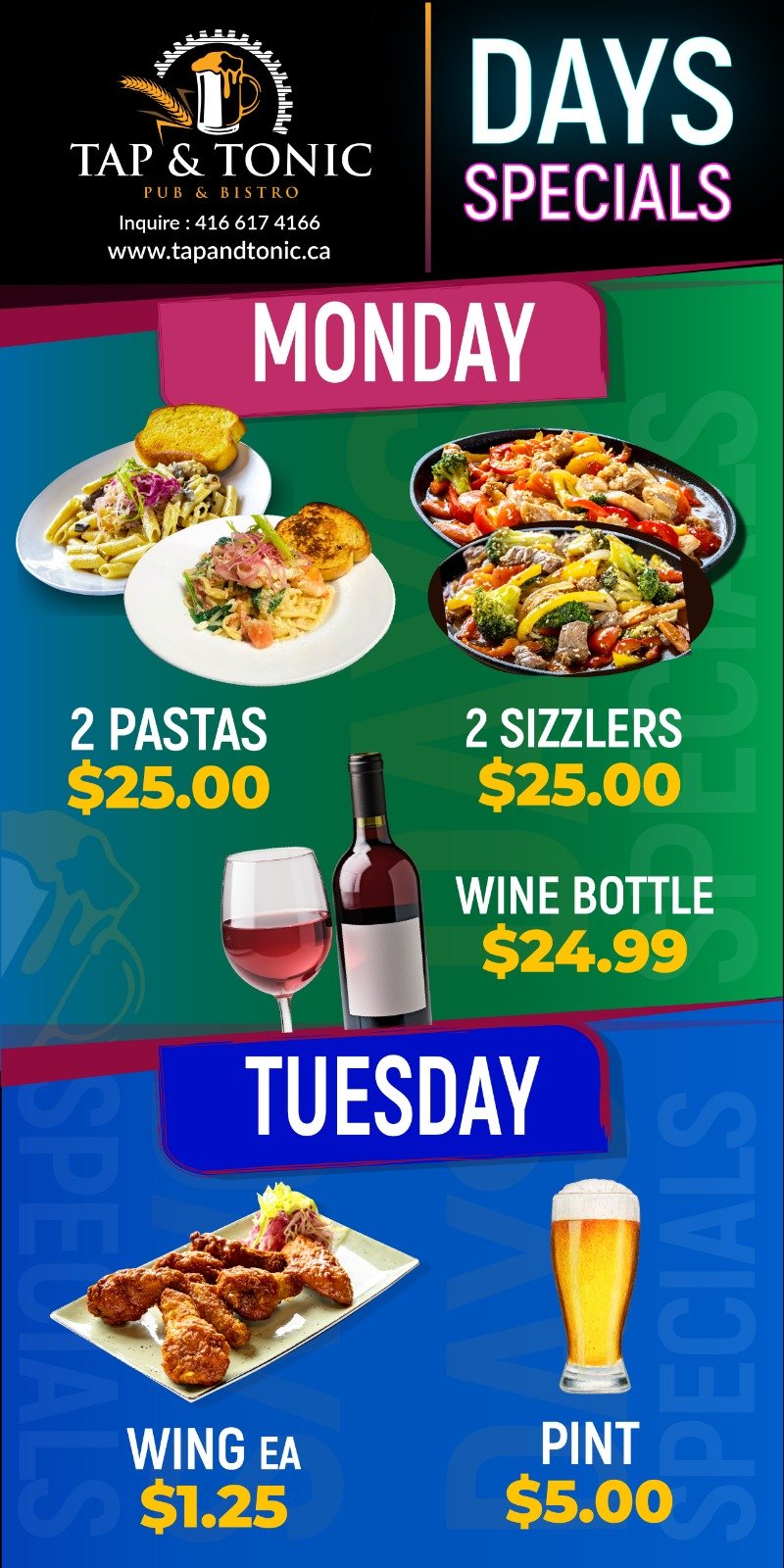 Welcome to Tap & Tonic, where great food, great drinks, and great times come together in the heart of Ontario.